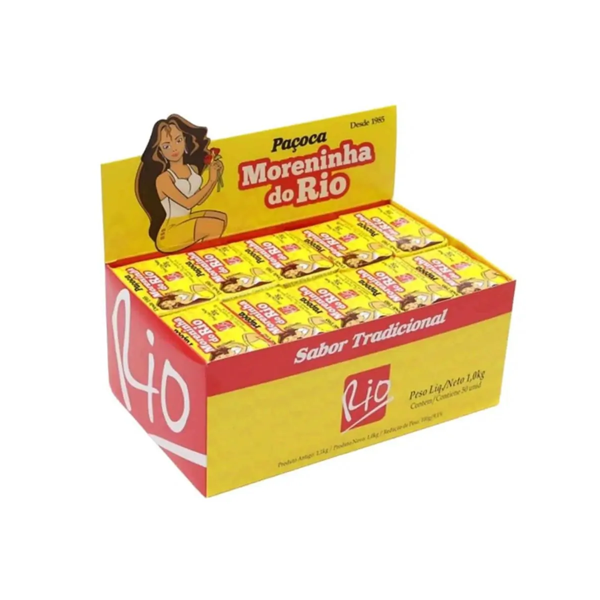 A Paçoca Moreninha do Rio 1kg é uma das versões mais populares do doce de amendoim brasileiro. Apresentada em formato retangular, cada unidade pesa cerca de 20g, totalizando 50 tabletes por embalagem. Produzida com amendoim torrado e moído, açúcar e sal, tem sabor marcante e textura que desmancha na boca. É ideal para lanches, festas juninas e sobremesas típicas.